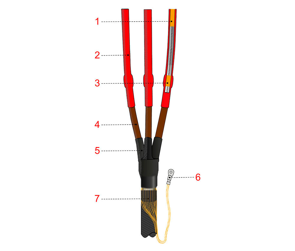 Термоусаживаемые муфты концевые внутренней установки типа 3ПКВТпнг-LS-10 предназначены для оконцевания 3-х жильных силовых кабелей с изоляцией из сшитого полиэтилена (СПЭ), с броней и без брони, с медным проволочным либо ленточным экраном на напряжение до 10 кВ включительно, с трекингостойкими жильными трубками не распространяющими горение, с пониженным газо- и дымовыделением.