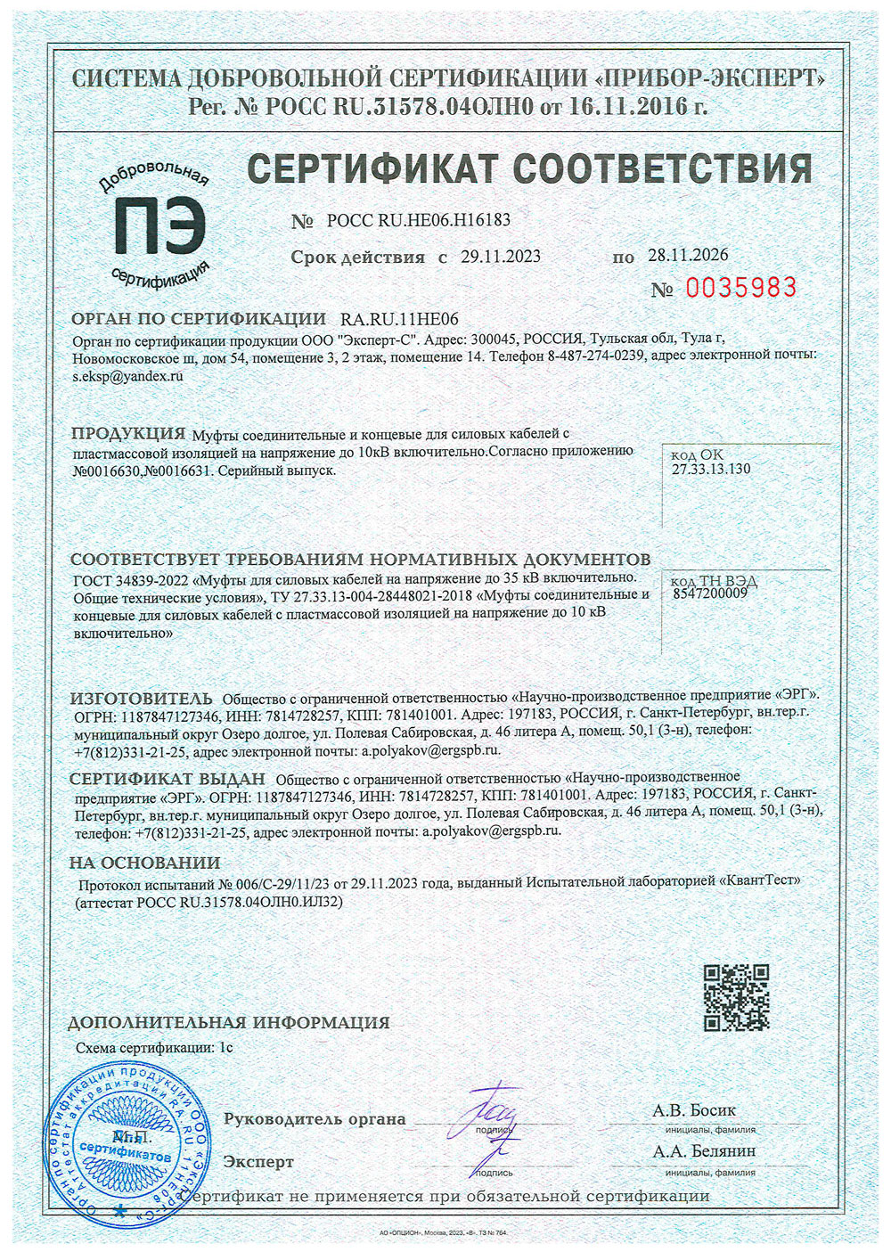 | ERG203556 | 3ПСТ(с)нг-LS-10У | СПЭ/ЭПР | до 10 кВ | 3 | 35-50 | без брони | Под заказ |