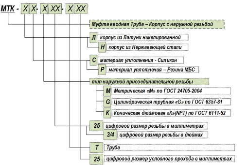 Муфты обладают повышенной степенью защиты - IP 67. Муфты МТК изготавливаются с метрической «М», цилиндрической «G» и конической дюймовой «К» резьбой в соответствии с ГОСТ. Муфты МТР устойчивы к воздействию кислот, щелочей, морскому климату, фенолам, спиртам, фреонам, антифризам, растворам солей. Возможна эксплуатация в солёной морской и пресной воде.